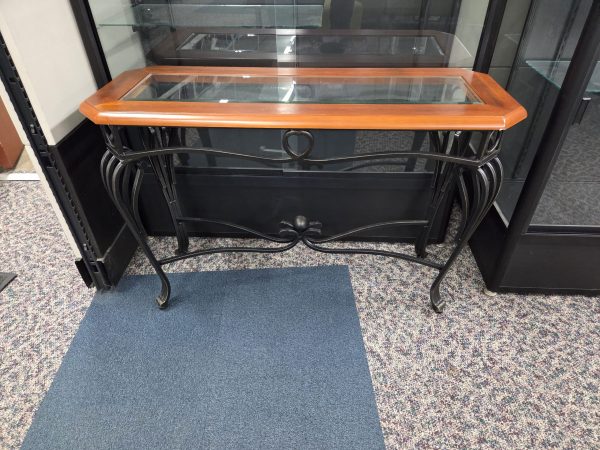 Black metal base with wood and glass top